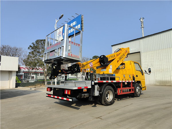 高空作業車又名升降車,作業結構簡單,操作方便,安全可靠,外型美觀,廣泛適用于市政、電力、路燈、廣告、通訊、園林、**、工礦、碼頭等多種系統的高空作業。我公司高空作業車采用東風、江鈴、慶鈴等原裝優質底盤,以高強度錳鋼作為上裝主要受力結構件,具備上下臂限位功能、雙重互鎖功能、發動機緊急熄火及重新啟動功能,保證用戶作業安全。上、中、下操作,方便快捷;全回轉式伸縮臂,靈活機動;帶起重吊機,一車多用;10-30米作業高度可供選擇,用途廣泛。