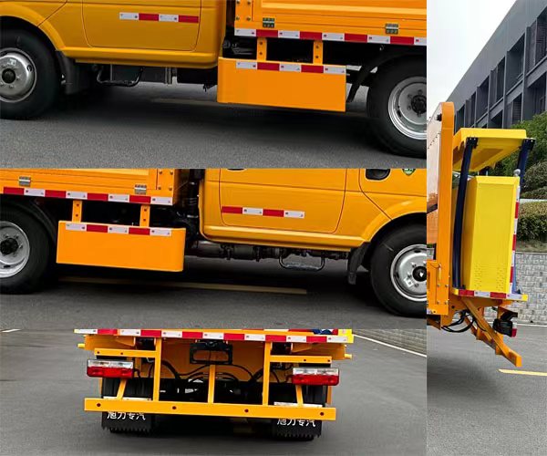 上裝配置:采用Q235國標邊3mm,底板花紋板4mm厚,不銹鋼合頁,箱體后部防撞緩沖模塊包采用國際知名技術產品70K防撞緩沖模塊,防撞緩沖吸能模塊主要由車載防撞緩沖墊和導向標志架組成,充當施工作業(yè)車輛后方的緩沖衛(wèi)士。